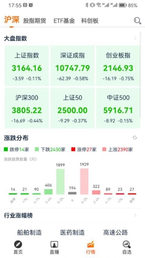 软件设有专门的“行情”板块,用户能够随时通过该板块查看各类股票的行情信息。