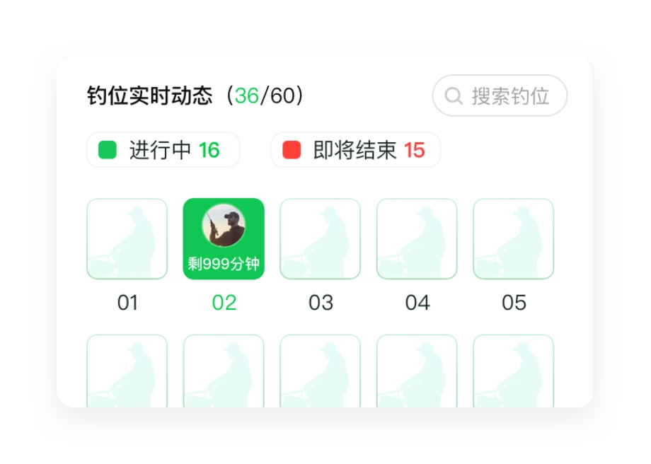 钓位是否被占用一眼就能看清,空闲和使用中的状态都能精准展示,助力您合理安排钓位资源,不错过任何经营机会。