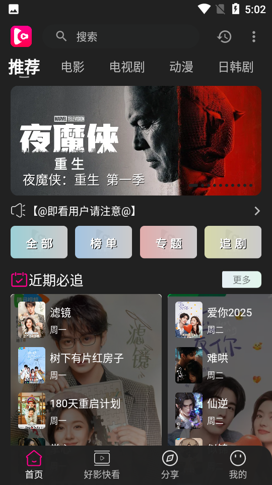 即看影视2025是一款精选全网高质量影视剧资源的追剧,成为广大影视爱好者追剧的首选平台,不仅资源丰富,种类多,而且更新速度也特别快,在这个平台上能够更快看到当下最热门的剧集和电影,并且每天还会准时为你推荐当前热门好剧,不再需要花费更多的时间去找剧,还能通过自带的投屏功能,将手机上正在播放的影视内容投影到大屏幕上,体验更加刺激的观影感。