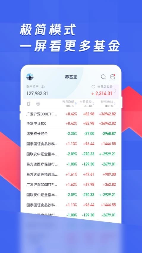 养基宝是一款手机端基金估值查询工具,让用户能随时随地方便地查询各类基金产品,掌握其涨跌动态,从而更科学高效地进行日常投资理财决策,减少投资亏损风险;平台汇聚了丰富多样的基金资源,提供详细的基金数据走势,用户可免费查看这些信息,轻松了解基金实时收益情况,为日常的买入卖出操作提供便利。该软件支持多账户统一管理功能,无需切换多个应用,就能在一个平台上集中查看和管理所有账户,助力保障投资效益;其界面设计干净简洁,各类收益数据直观呈现,用户能快速清晰地知晓自身盈亏状况,让投资理财过程更加高效便捷。