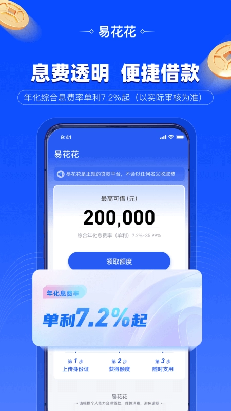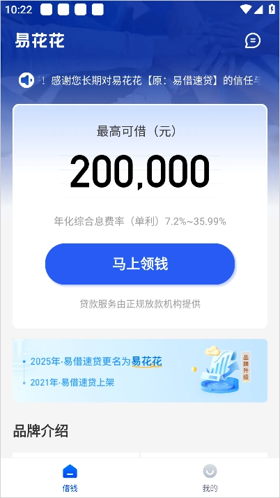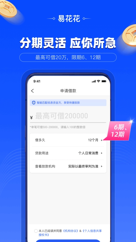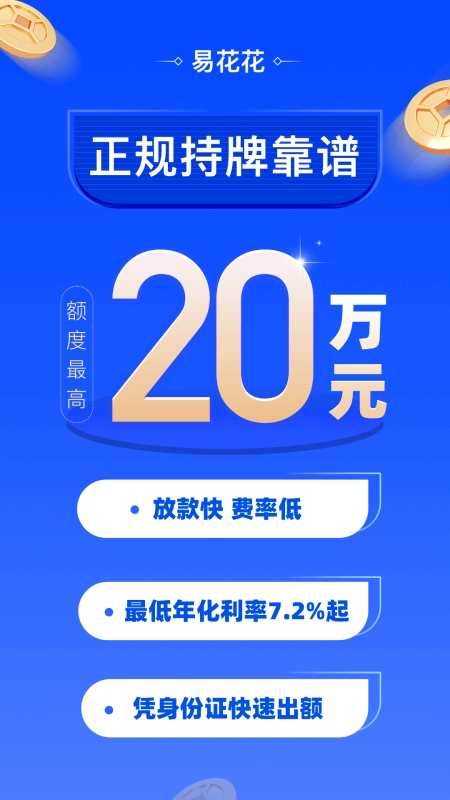 易花花是一款提供现金分期服务的贷款软件,它与锡商银行、大兴安岭银行、马上消费金融等多家持牌金融机构建立了深度合作关系,专注于为用户提供便捷且安全的信贷服务。依托先进的人工智能技术和大数据风控体系,易花花能够快速、精准地为用户匹配最合适的贷款方案。平台申请流程简洁高效,审批速度快,用户可在短时间内得知审批结果;同时,高额度、低利率、灵活还款等优势,让易花花成为众多用户办理贷款时的优先选择。