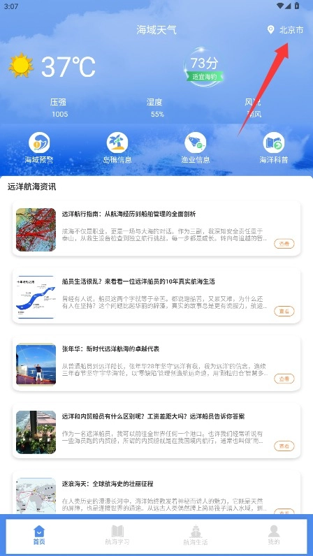 在主页面选择不同城市区域,就能实时查看对应海域的天气情况和潮汐信息。