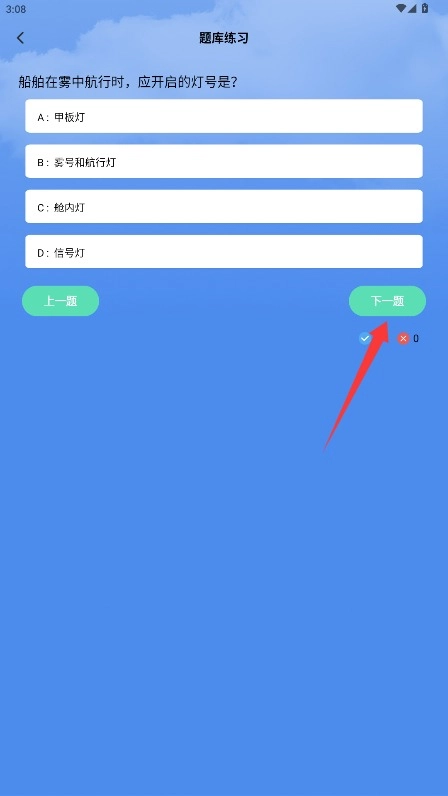 在练习界面为每道题挑选正确答案,完成当前题目后点击“下一题”按钮继续答题。