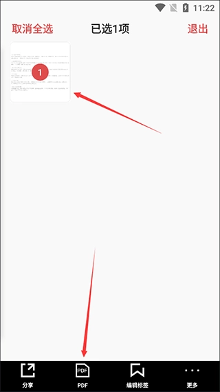 你可以先勾选想要生成PDF的文件,再点击下方的【PDF】按钮;另外,我们还支持一键分享文档、给文档添加标签等功能。