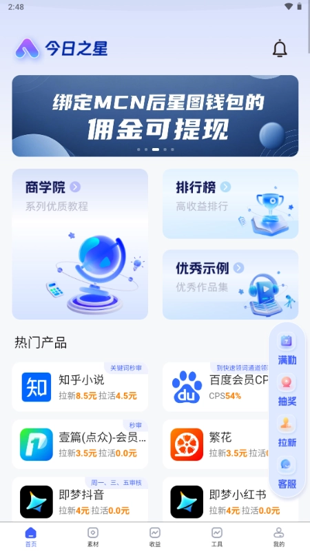 今日之星软件是一款相当实用的工具类应用,里面不仅有海量的短视频资源,还汇集了丰富的故事合集、游戏资源等内容。用户能通过这款软件获取大量优质素材,这些素材能助力大家更高效地创作出新颖的作品,此外还有变现相关的活动,感兴趣的朋友不妨来试试吧。
