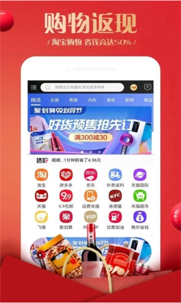 购物返利app是一款超级不错的网购返利app,专为用户提供省钱购物,使用它一键分享能够为你省去许多不必要花的钱,让你轻松在线购物,是广大购物爱好者必备的神器之一,喜欢赶紧下载体验!