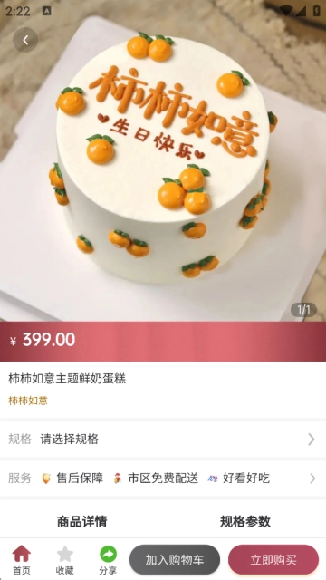 可以对不同品类的蛋糕进行分类选择,快速完成定制下单。