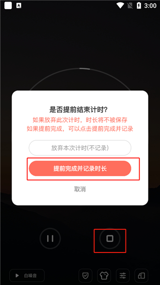 6、点击右侧小方块,就能结束计时;点击左侧,则可暂停计时。