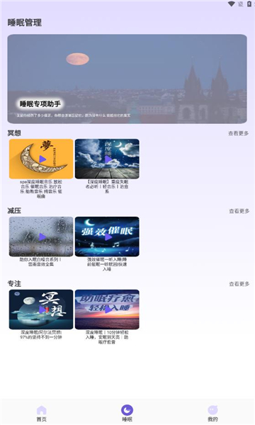 软件还提供了许多助眠的视频和音频供用户去使用
