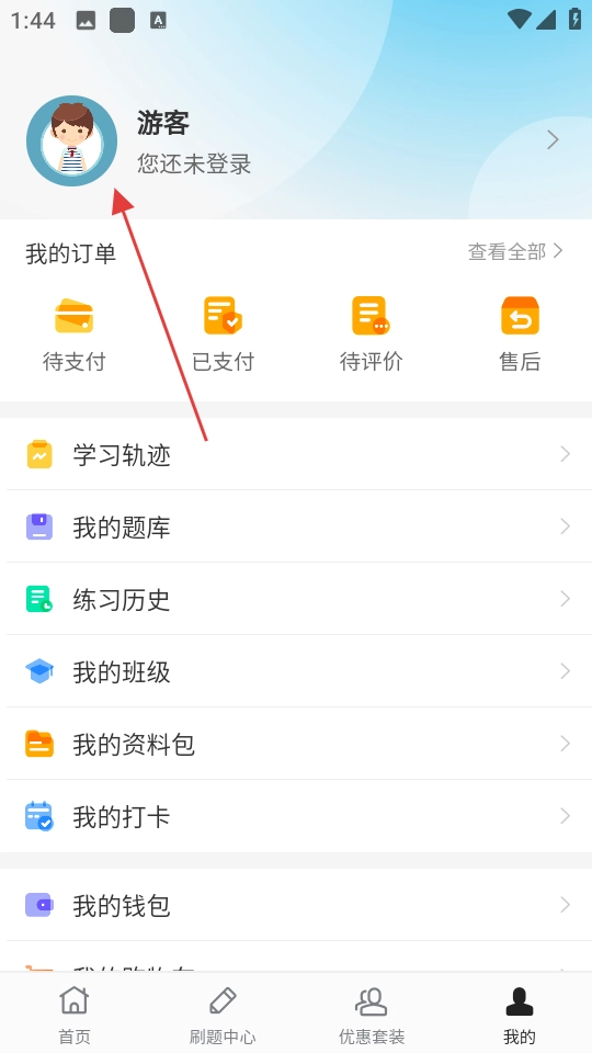 进入题宝典首页后,点击右下角的“我的”按钮,即可进入个人页面。