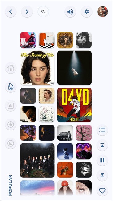 用户还可以进入榜单列表,从中挑选各类不同的专辑资源进行聆听。
