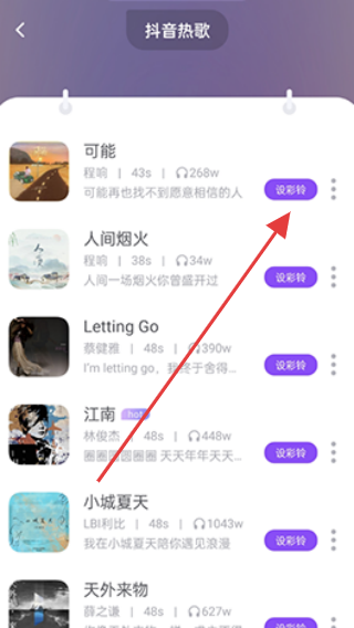 2、进入分类页面,选择喜欢的音乐点击【设彩铃】。