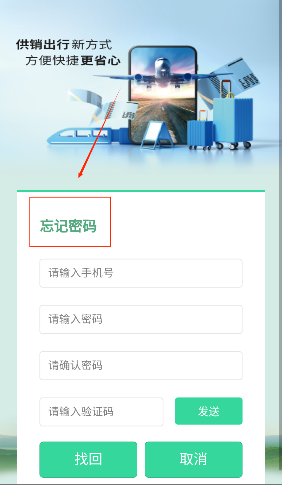 2、登录时如果忘记密码可以点击忘记密码选项,输入注册时的手机号和收到的验证码,按照提示设置新密码并确认,点击找回按钮。