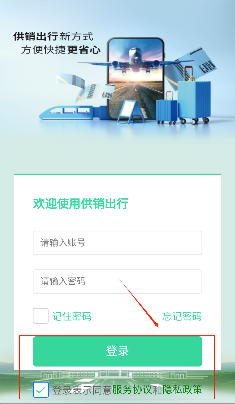 1、先在应用商店搜索供销出行并安装,打开应用后点击注册按钮,输入手机号获取验证码完成账号注册,记得仔细阅读用户协议。