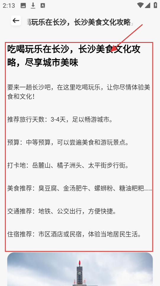 2、进入【长沙攻略页】,可以查看旅行天数、预算、打卡地、美食等方面的推荐,依照攻略来规划长沙之行。