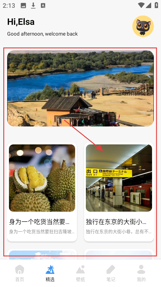 3、切换到【精选】页面,这里展示了不同目的地的内容,选择东京相关的内容,就能了解东京旅行的风景与体验。