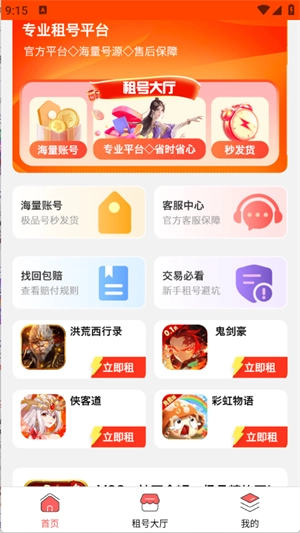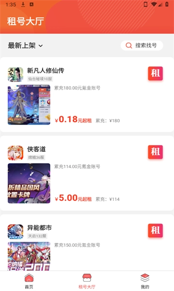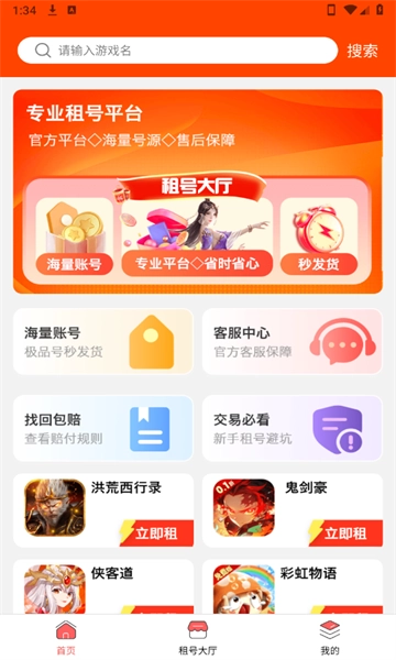 在首页中有着超级多的游戏账号可以租赁