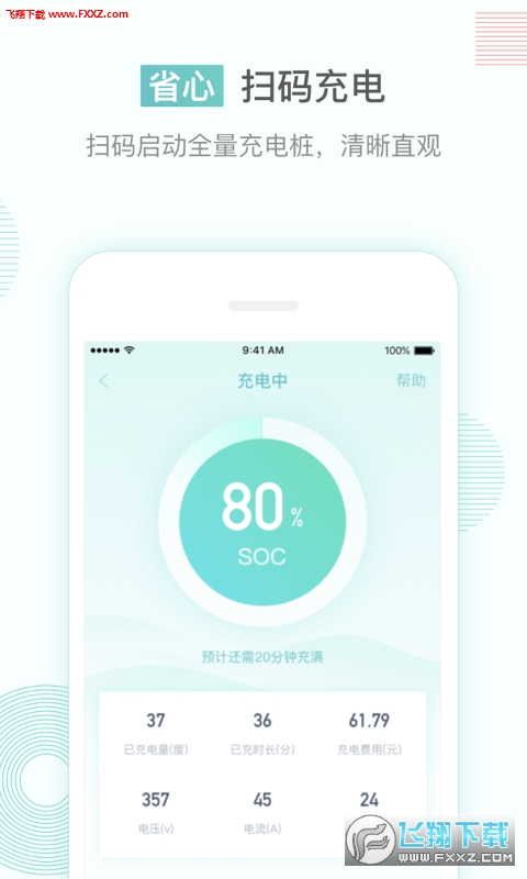 • 扫码充电:扫描充电终端的二维码即可一键启动充电;充电过程中能实时监测充电数据,充电结束后会发送短信提醒。