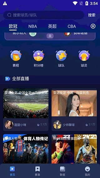 3、直播:各种体育赛事直接线上看。