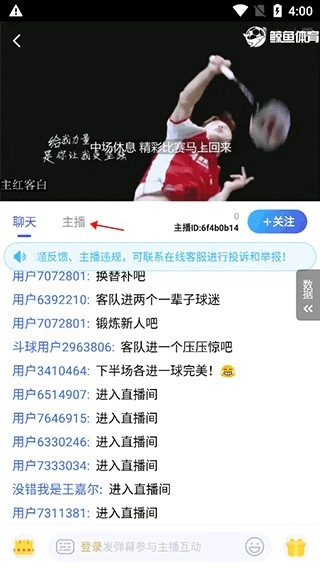 点击直播间界面的主播页面。
