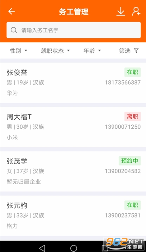 化管理系统,能够精准追踪每位务工人员的求职进展与在职情况,助力提升服务效能。软件特色