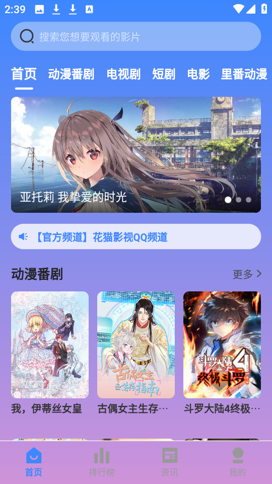 花猫影视是一款能够免费播放视频的追剧利器。在这里,用户可以尽情观看动漫、电视剧、电影等各类影视内容。软件会依据用户的喜好推送相关作品,并且保持实时更新,提供高清播放服务,全程没有广告干扰,为用户打造出纯净的观影氛围!