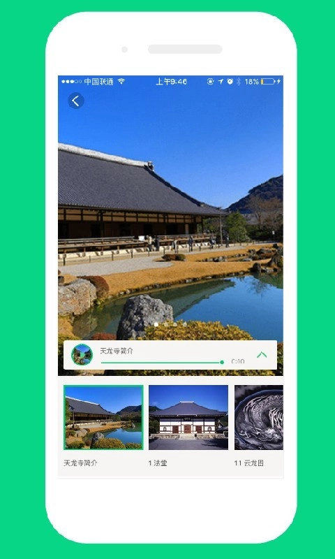3、用户浏览景点时,还会为用户播放景点语音解说,让用户感受到真人导游给他们带来的旅游体验。