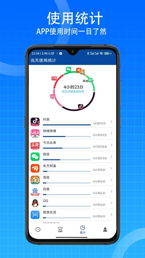 使用时长统计:可查看每日、近7天的手机使用时长、解锁频次,以及各应用使用时长的排名情况等。