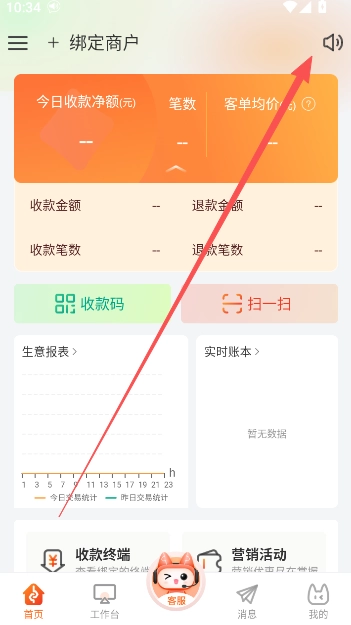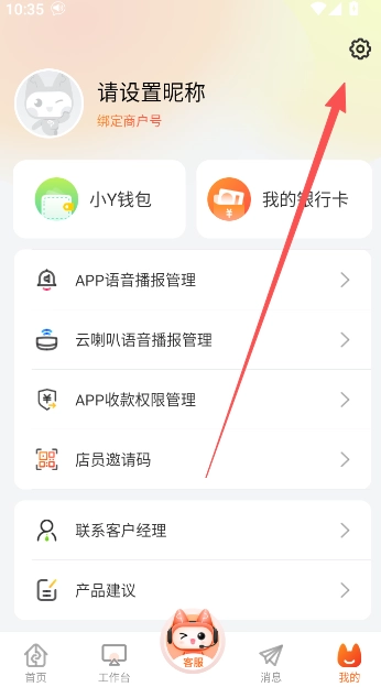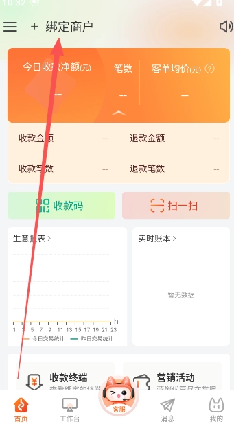 2、来到首页以后,进行商户账户的绑定操作。