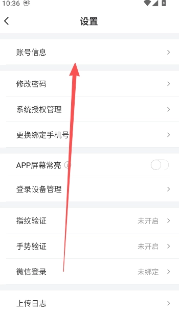 2、选择打开置顶的账号信息功能选项。