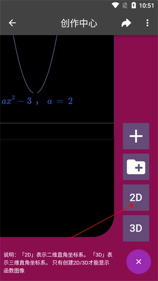 2、点击右下角的“+”,选择2D;