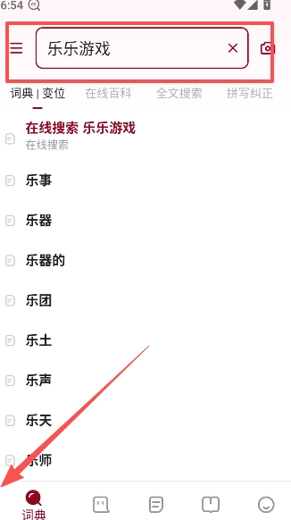 1、打开软件以后,在词典页面上方输入想要搜索的字词,等待西语翻译匹配。
