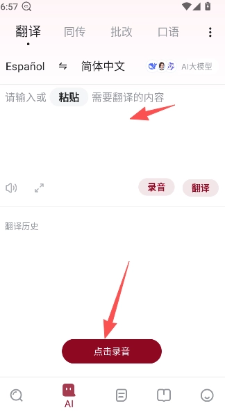3、如果觉得以上的方法比较复杂,也可以点击下方的AI选项,输入文字或是语音内容,进行翻译的。