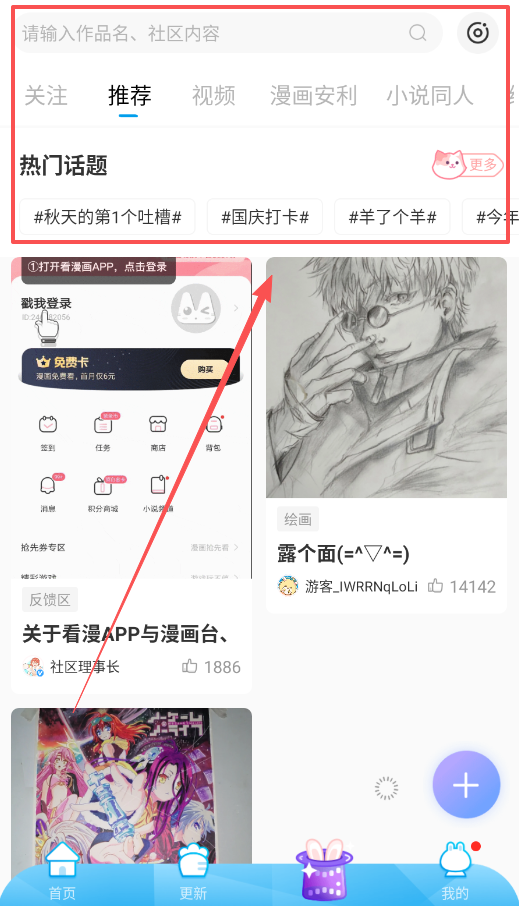2、在内容查找上,首页设置了多种发现漫画的途径,用户既能直接搜索作品名称,也可浏览推荐位展示的热门漫画。