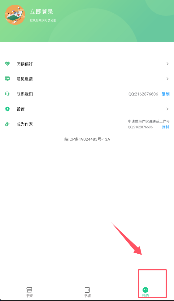 4、我的页面藏着不少实用功能,登录后不仅能同步数据,还能设置字体大小等阅读参数。通过QQ客服可以反馈使用问题。
