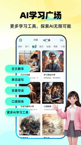 快问AI不仅可以回答问题,还可以陪您聊天、分享兴趣、讲笑话、讲故事,让您在使用过程中感受到欢乐时刻。随着您的使用深入,快问AI会自主学习和进化,逐步提升个性化的使用体验,成为您最贴心的学习伙伴。