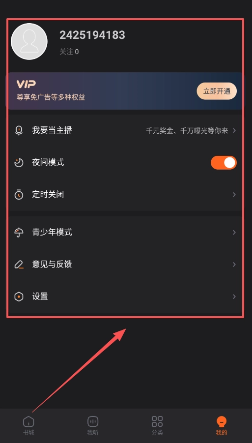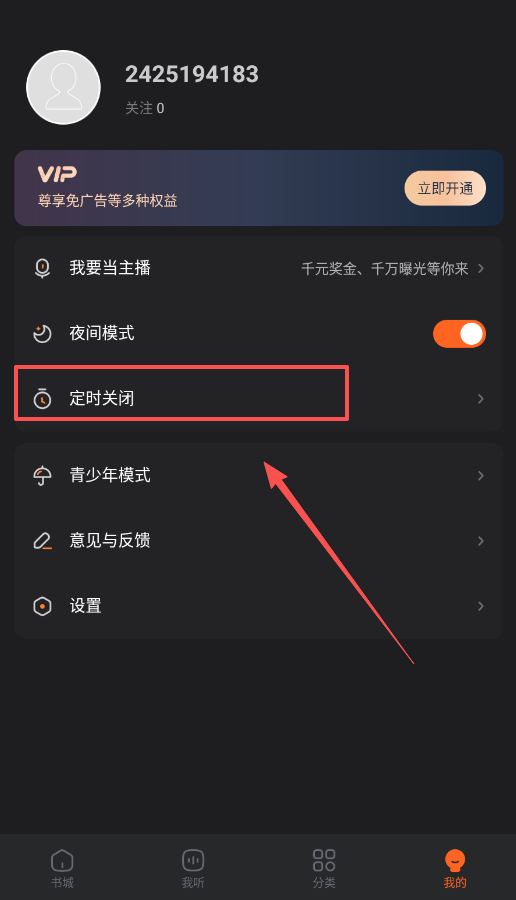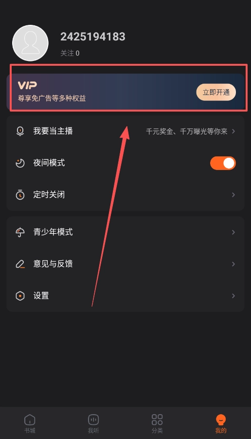 4、要是偏好不受打扰的收听氛围,不妨考虑开通VIP,如此便能避开广告的干扰,拥有更纯粹的听书感受。