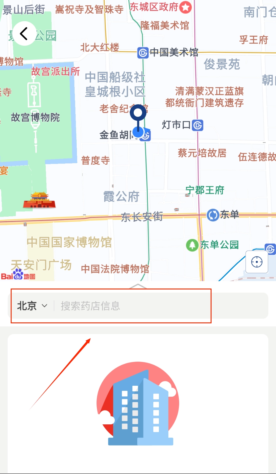 在首页的搜索框中输入药店名称,即可定位到该药店并进行药品购买。