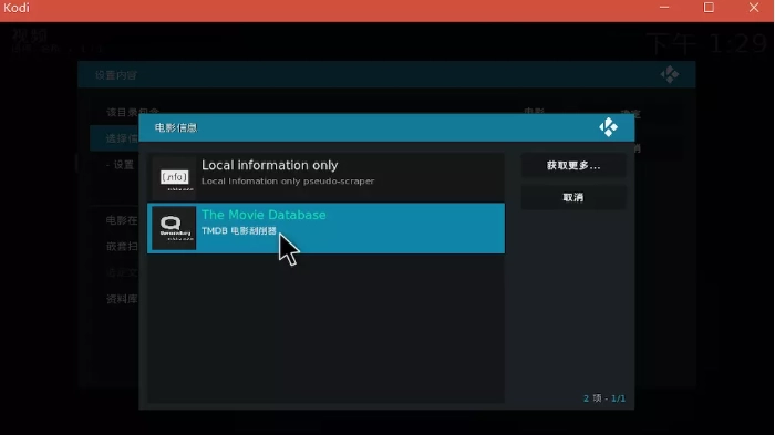 在视频库的设置界面里点击“扫描库”选项后,Kodi就会自动对文件进行整理,同时获取并添加封面、简介之类的相关信息。