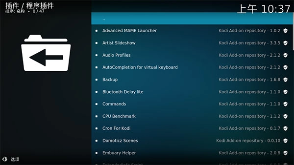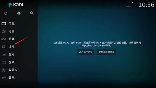 安装完成后,回到Kodi主界面,接着依次进入“插件”板块,选择“我的插件”,再找到“PVR客户端”,从中点击“PVR IPTV Simple Client”,最后进入该插件的“设置”界面。