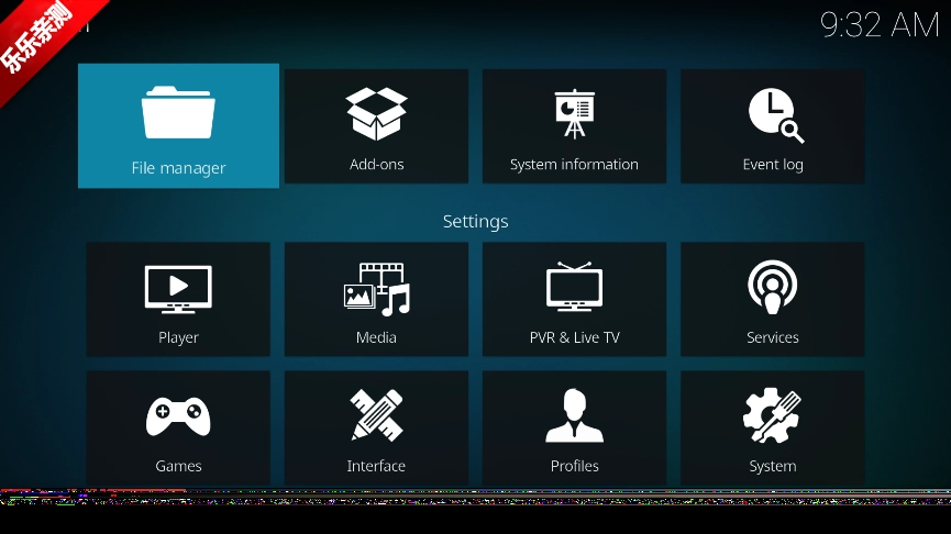 在Kodi主界面按下“↑”键,进入“电源”菜单后选择“文件管理器”,即可直接跳转到局域网源。
