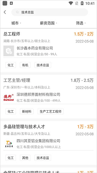 4、职位展示采用卡片式设计,各类信息清晰呈现,助你高效求职
