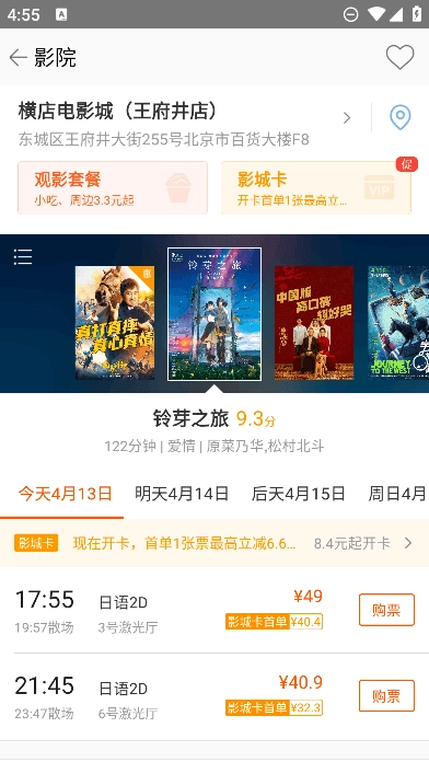 1、覆盖全国7500家顶级商圈影院,尽享超值票价的观影消费体验
