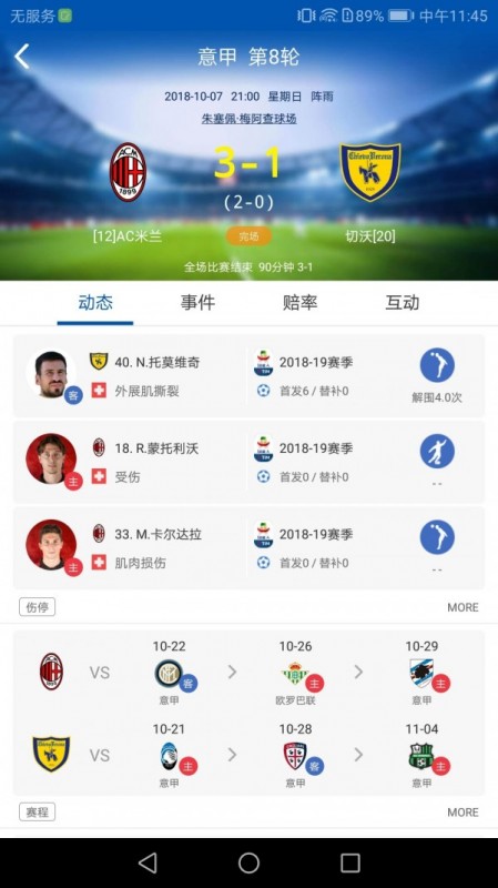 2、战况直播即时更新首发、替补和伤病名单,进球、红黄牌和换人信息,及半全场统计。