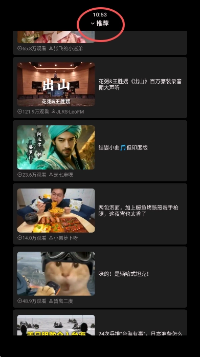 1、我们在首页点击上面的推荐,弹出菜单页面