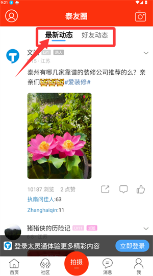 2、在社区内选择最新动态,可浏览实时资讯内容。