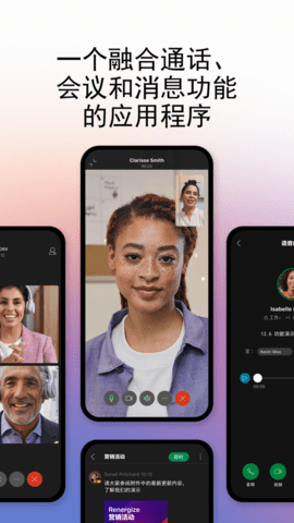 Webex手机App安卓端是一款专业的会议软件,支持消息发送、语音及视频通话,能实现安全稳定的协同工作。因其操作简单便捷,Webex已成为用户掌上协同办公的得力助手。在安全的工作空间内,用户可通过发送消息、文件共享、白板绘图、视频会议、发起呼叫等多种方式推动工作开展。