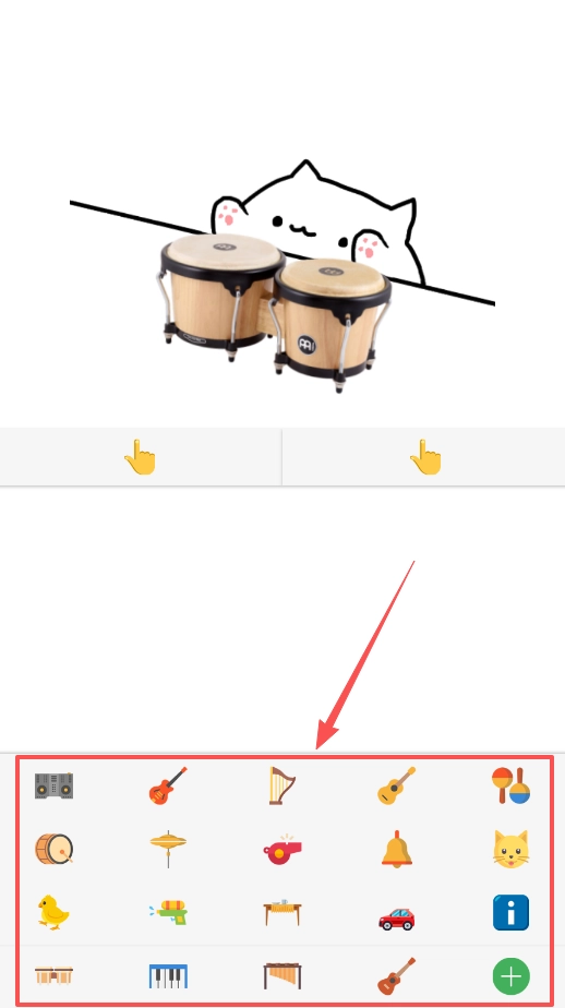 2、随后你会看到屏幕上出现不少乐器图标,像吉他、鼓或者电子琴之类的,用手指点选你心仪的那个,猫咪的小手便会握住对应的乐器啦。