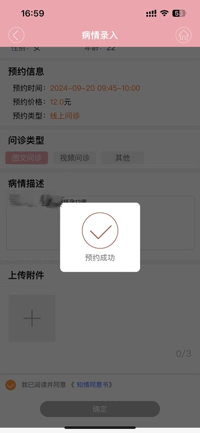 病情录入,点击确认并支付