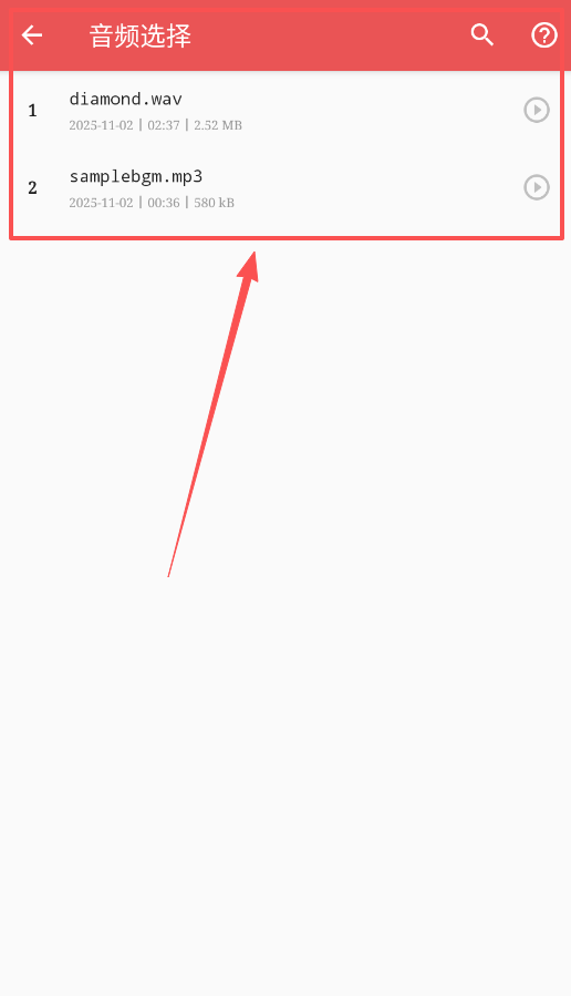 3、然后呢,系统会跳转到音频选择页面,这里会显示之前上传的音频文件,选中需要处理的文件比如diamond.wav。